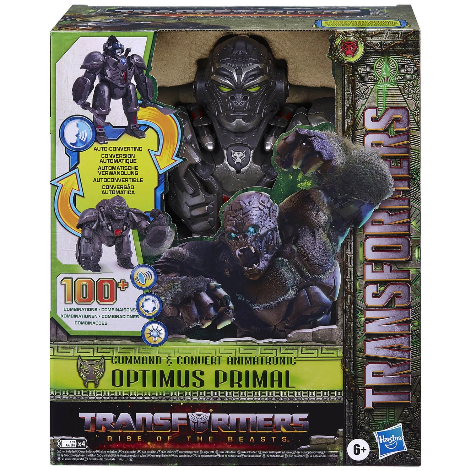- 100+ Combinations: Interactive toy features more than 100 sound and motion combinations! Command Optimus Primal toy to speak, beat his chest, pound the ground, roar, and more! Batteries not included