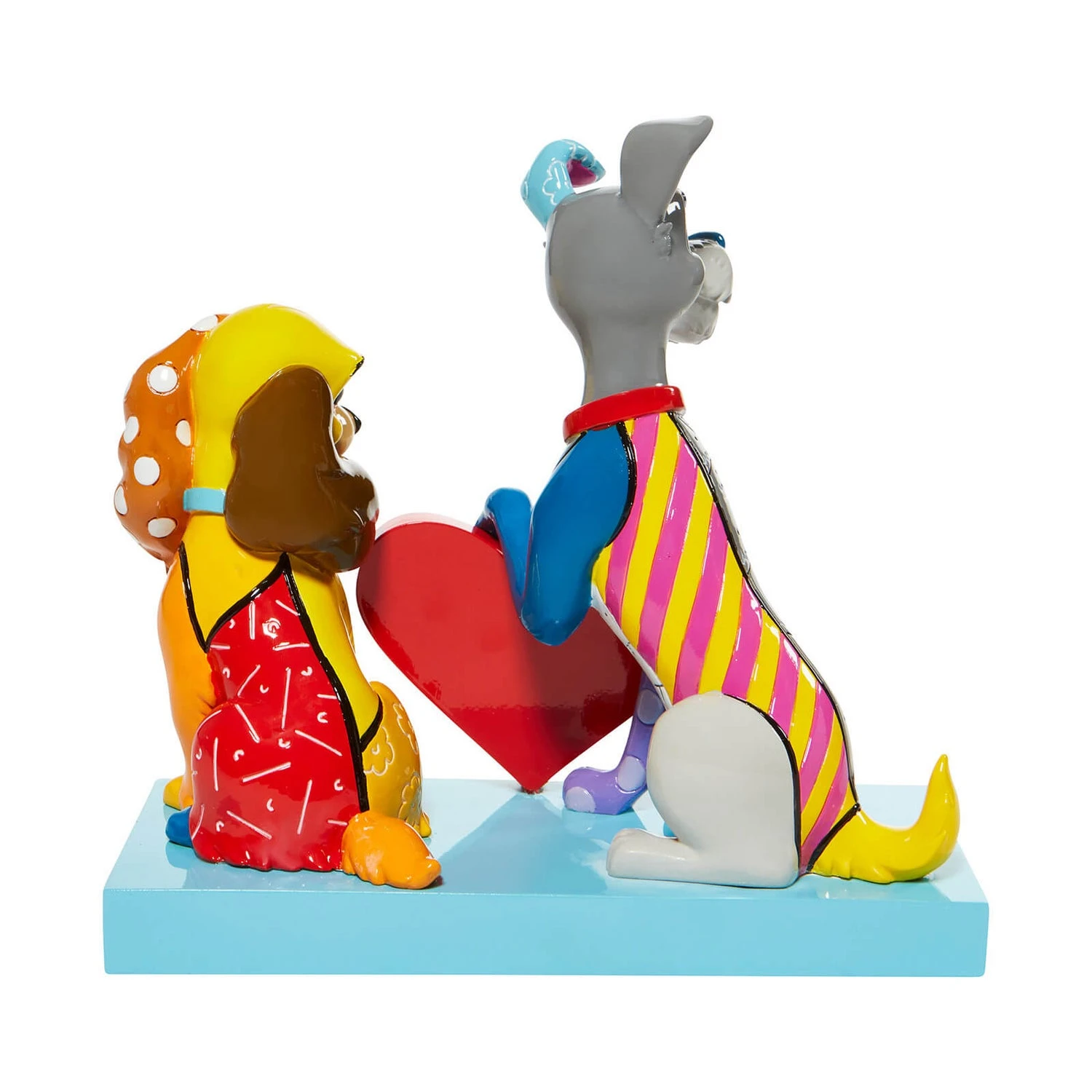 The classic coupling of Lady and the Tramp, celebrate their 65th anniversary in this striking pop art style figurine. With bold colour and compelling pattern, contemporary pop artist Romero Britto captures the fun and whimsy of Disney. Figurine is made from cast stone. Product is supplied in branded gift box. Unique variations should be expected as product is hand painted. Not a toy or children’s product. Intended for adults only.