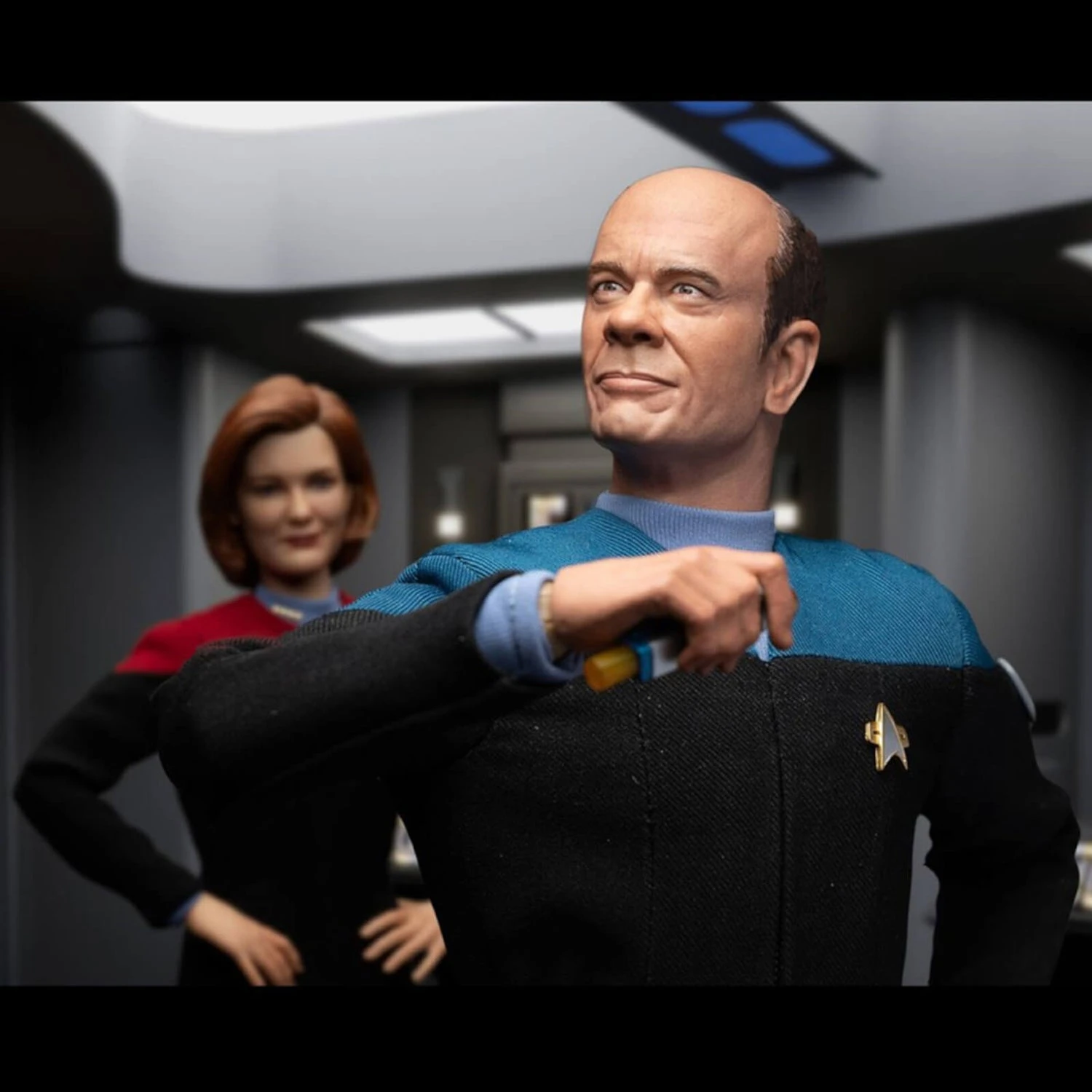 This 1/6 scale figure re-creates this iconic character in exquisite detail. Standing approximately 12″ tall, every element, from his 24th century jumpsuit to his shoulder mounted mobile emitter, is authentically reproduced. The original portrait sculpt of Robert Picardo as the Doctor has an authentic, hand-painted likeness.