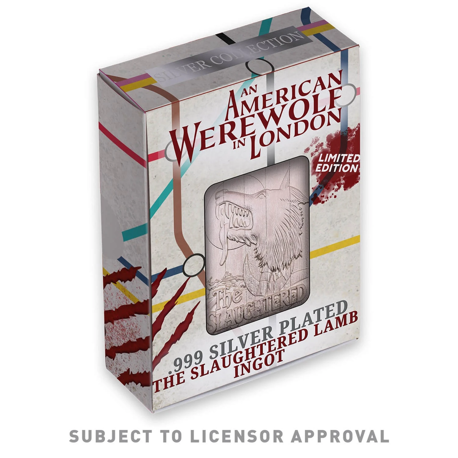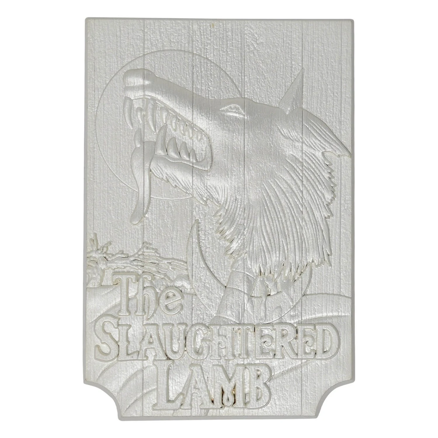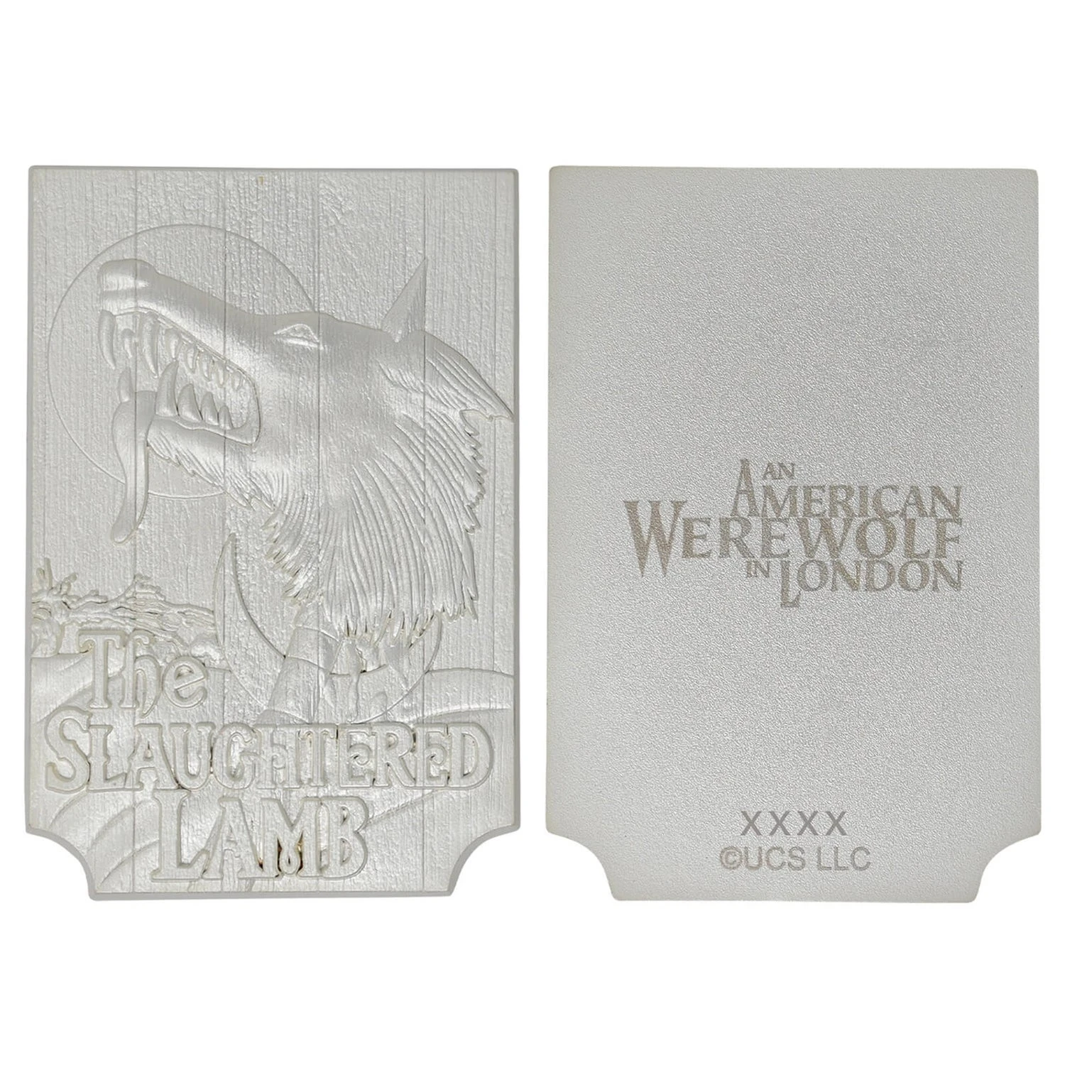 Released to celebrate the 40th anniversary of this iconic horror film, this heavyweight embossed replica of the Slaughtered Lamb pub sign is .999 silver plated (remember silver is how you kill the werewolf). The individually numbered ingot is supplied in a presentation box with display stand.