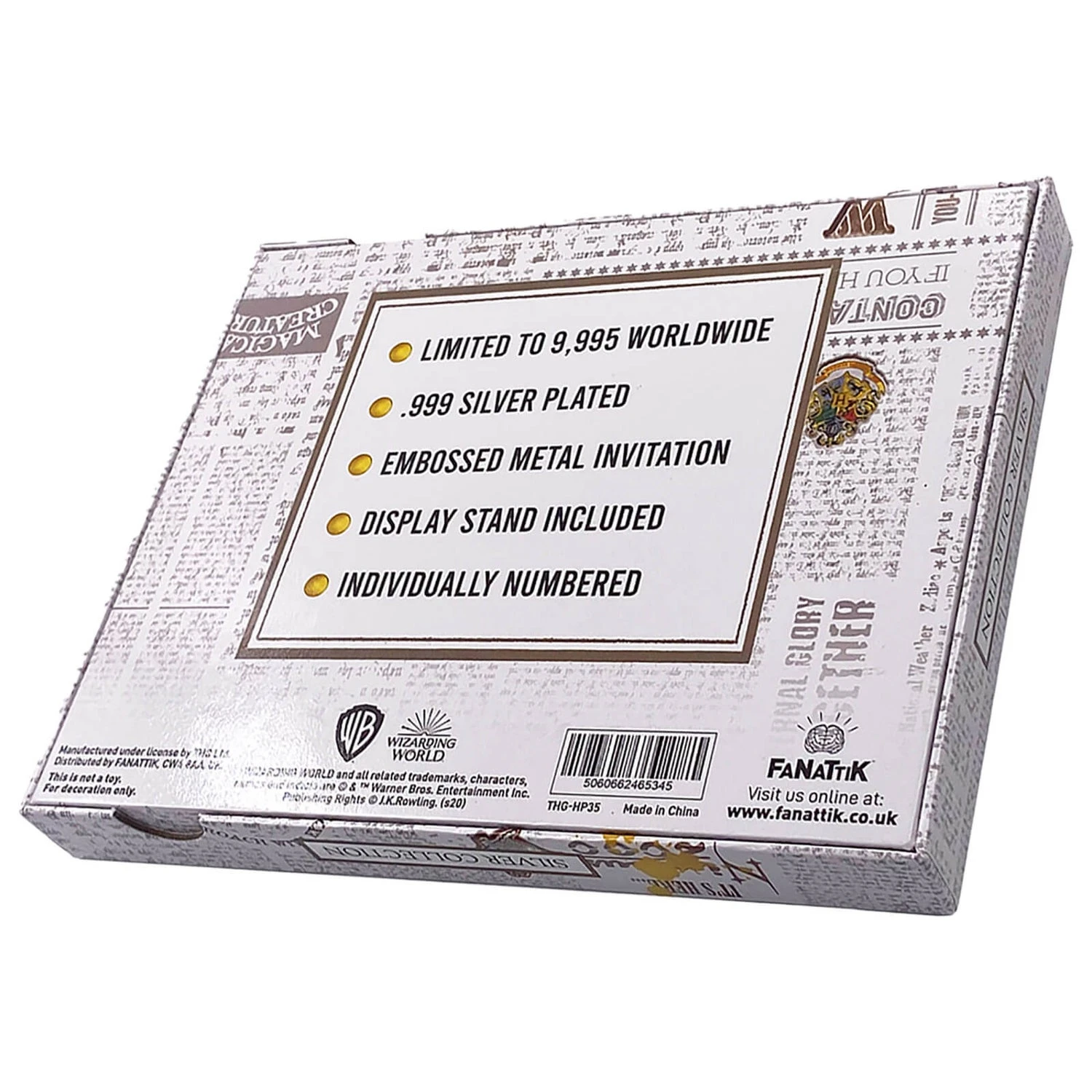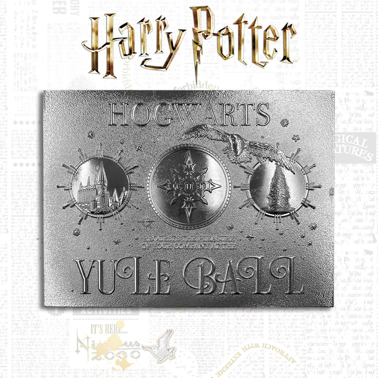 A .999 Silver plated metal replica of the Hogwarts Yule Ball. This is the ultimate officially licensed Harry Potter collectible. Limited to only 9,995 worldwide, heavily embossed detailed design, individually numbered and accompanied by a display stand.