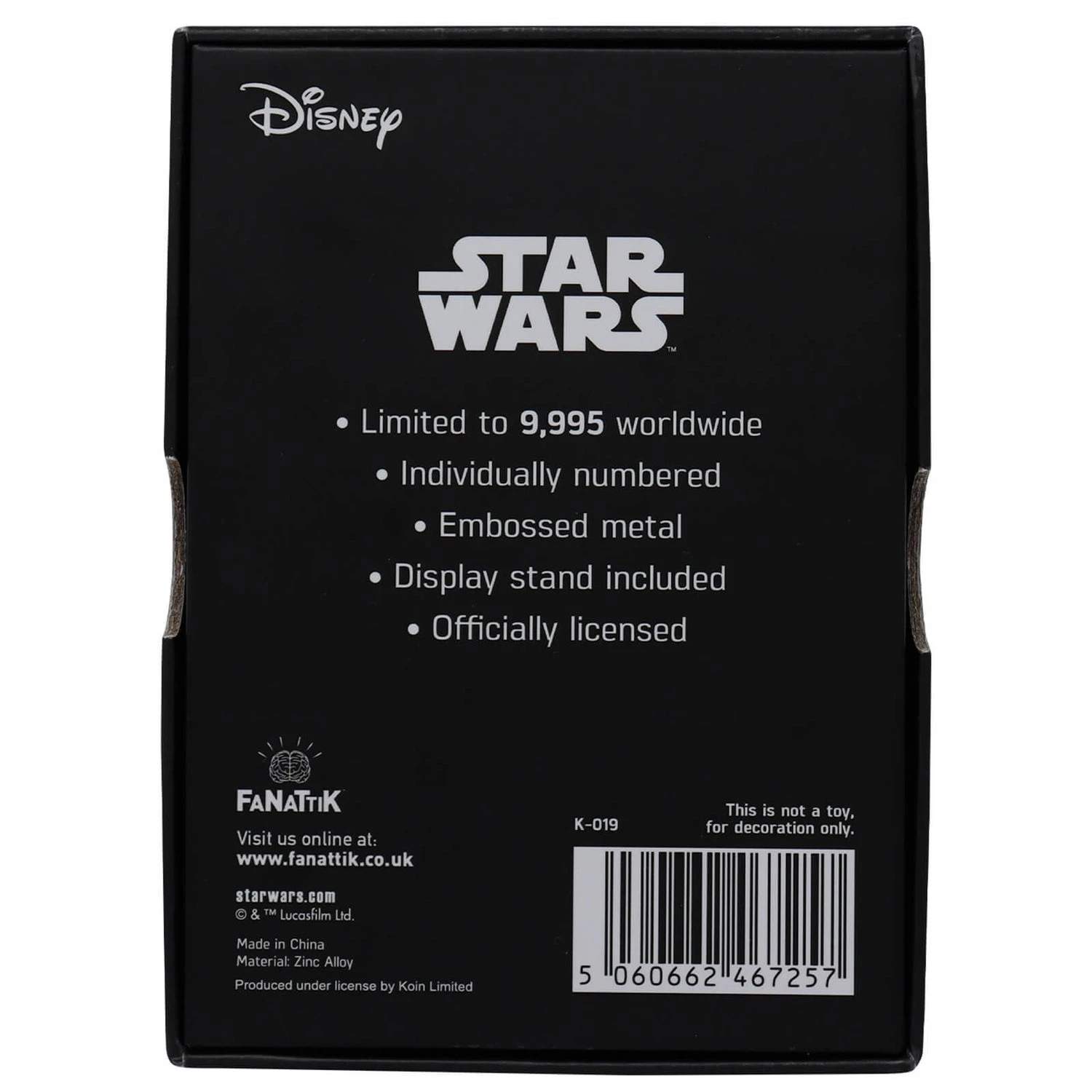 This officially licensed Star Wars metal collectible is limited to 9,995 worldwide and individually numbered. Featuring an iconic scene from the film, it measures approx 75 x 50mm and is embossed on both sides. The piece comes in a display box along with a stand.