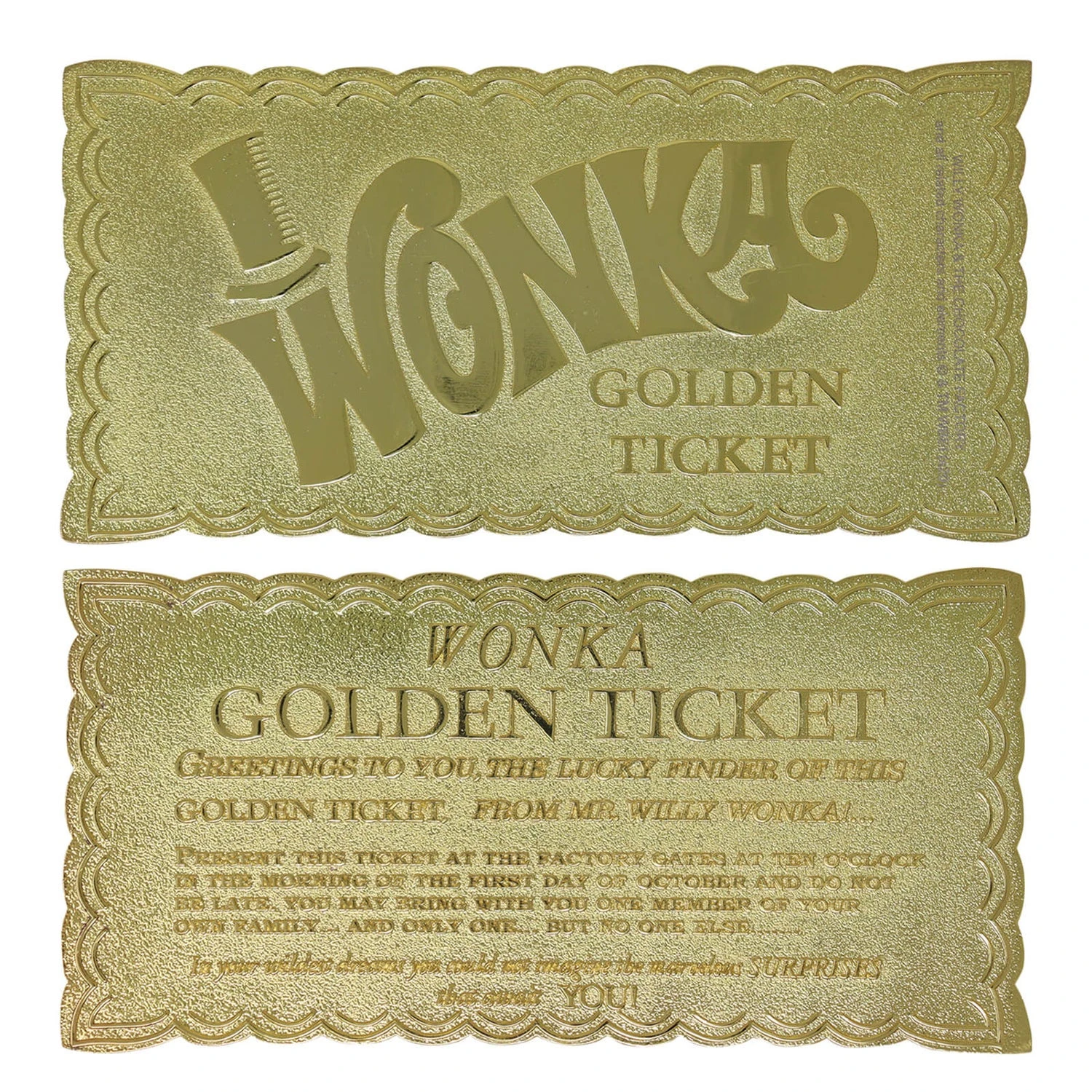 This collectors edition, gold finish Willy Wonka ticket is individually numbered and heavily detailed on both sides, supplied with a display stand within its presentation box. suppleid with a display stand.