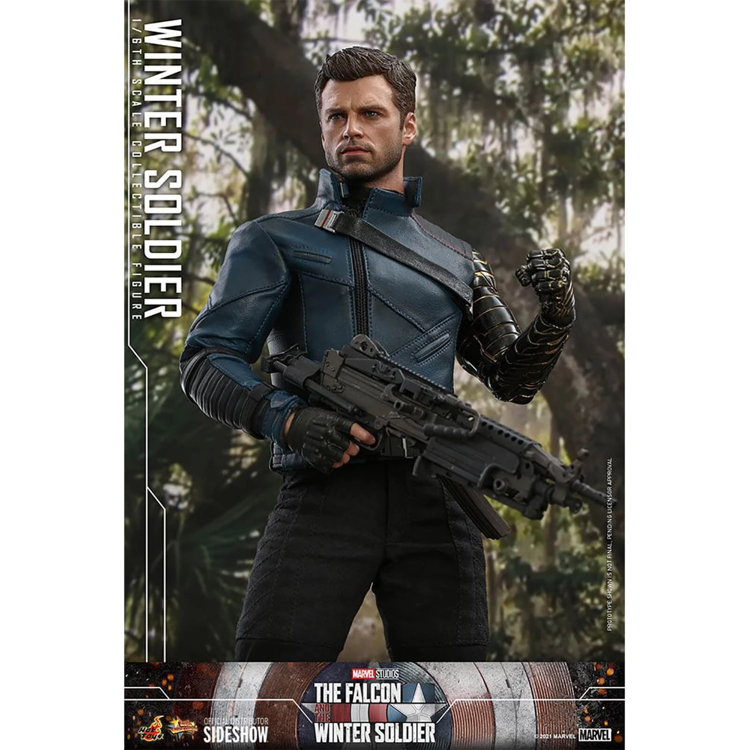 Sophisticatedly crafted based on the portrayal of Sebastian Stan as Winter Soldier in the latest action series, the figure features a newly developed head with remarkable likeness, a finely tailored tactic outfit, his iconic prosthetic arm displaying mechanic details and incredible painting techniques, highly-detailed weapons including machine gun and dagger, and a figure stand.