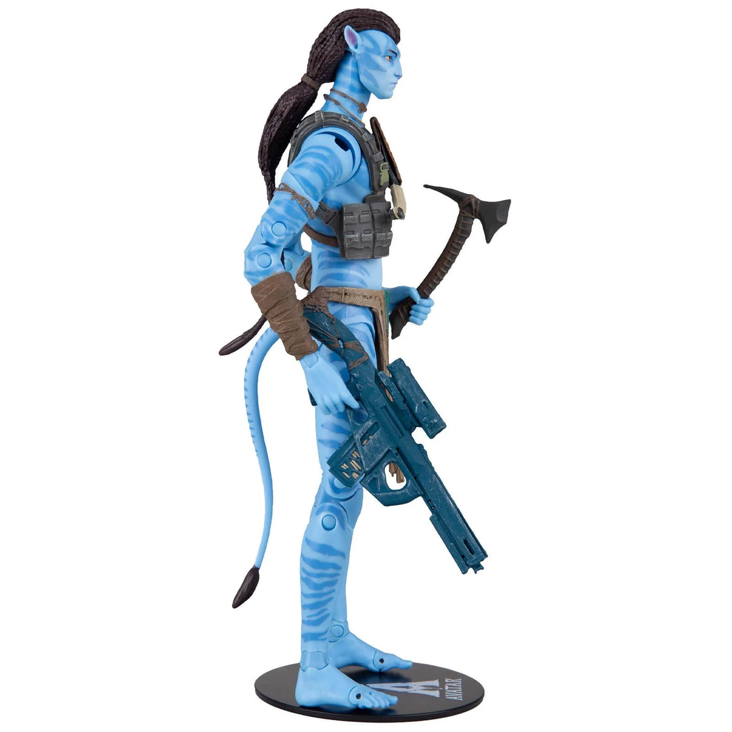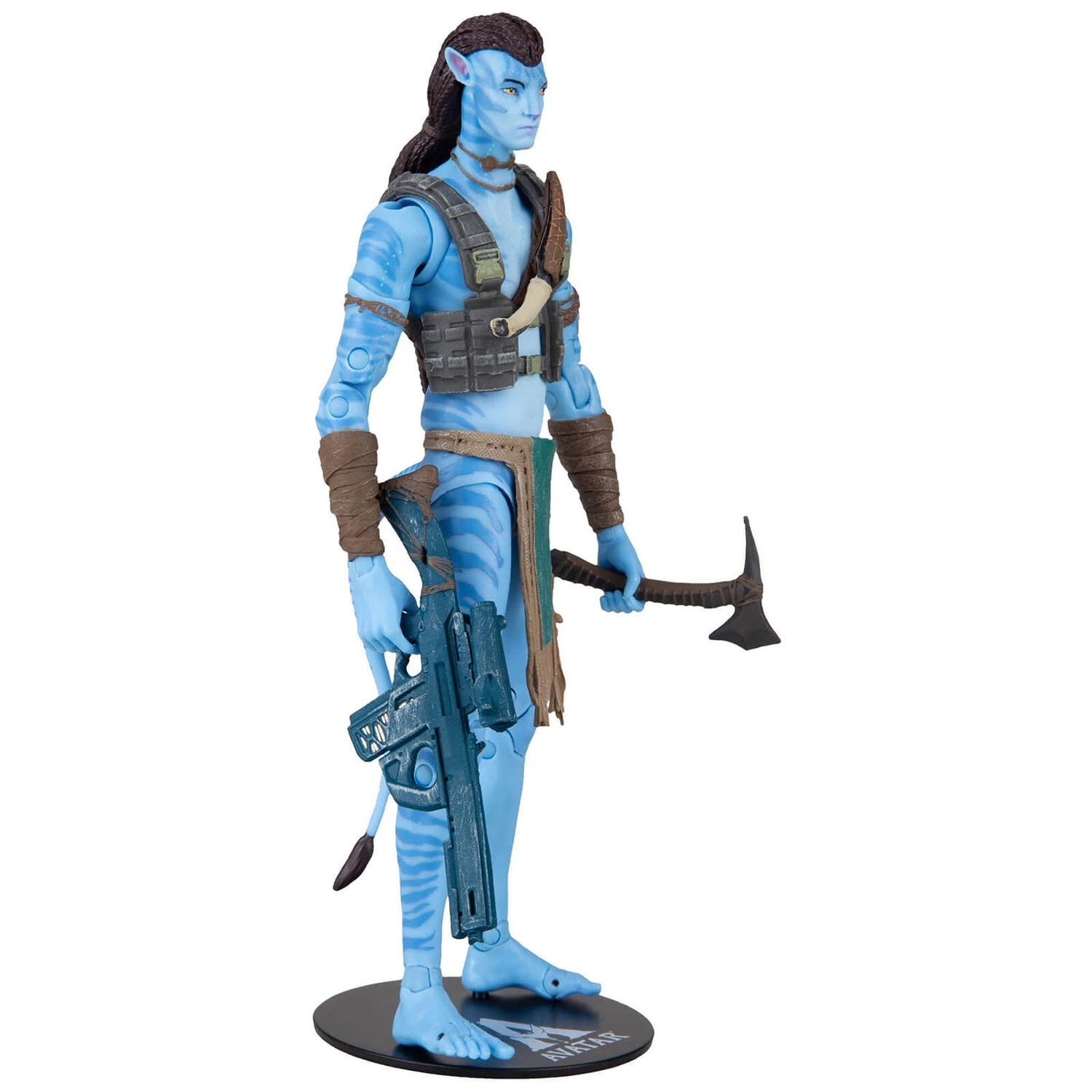 With his full battle gear, rifle, axe and knife, final-battle Jake Sully is ready to leap into action featuring 22 points of articulation, premium sculpt and deco, rifle, knife, and hatchet, collector stand, plus special blacklight-activated bioluminescence.