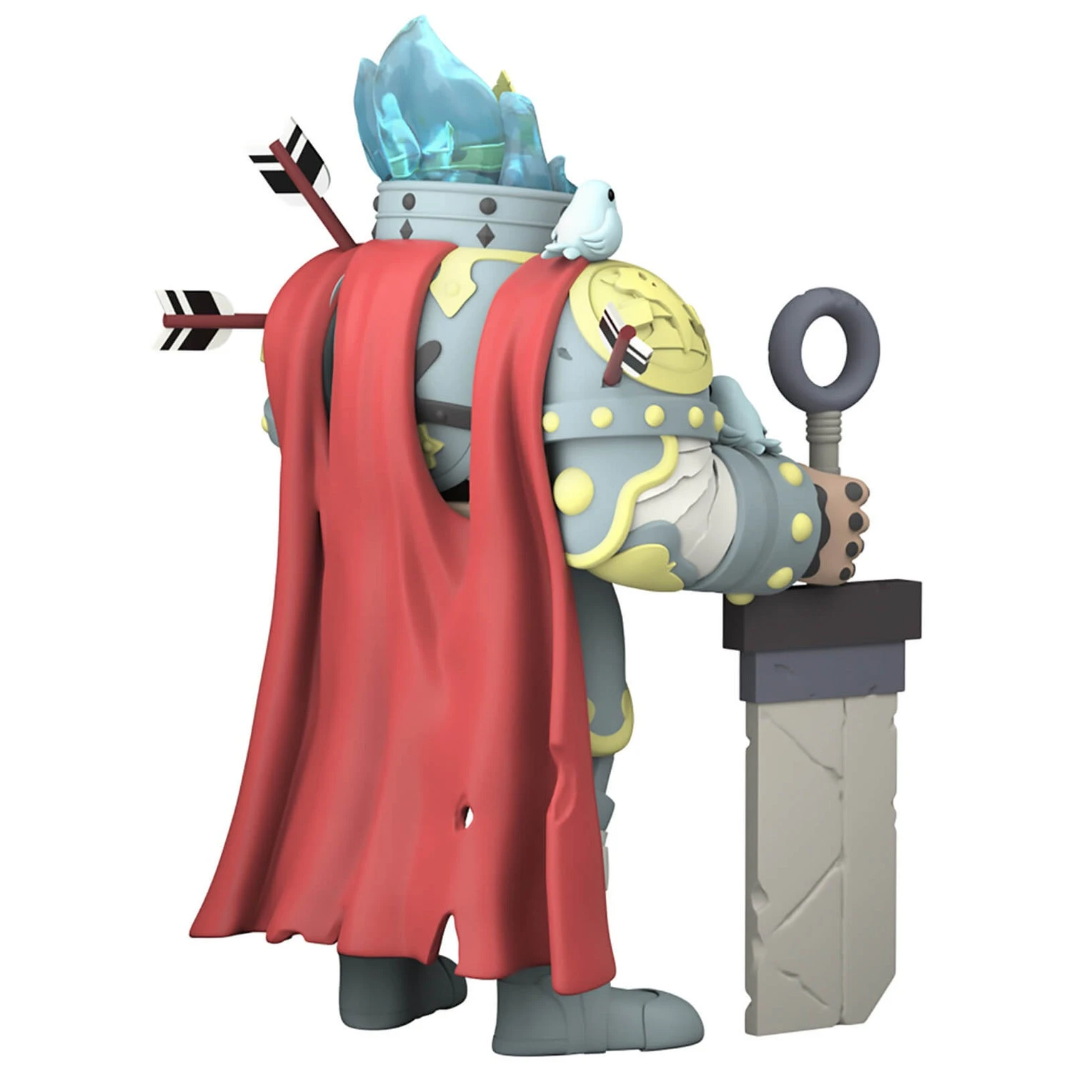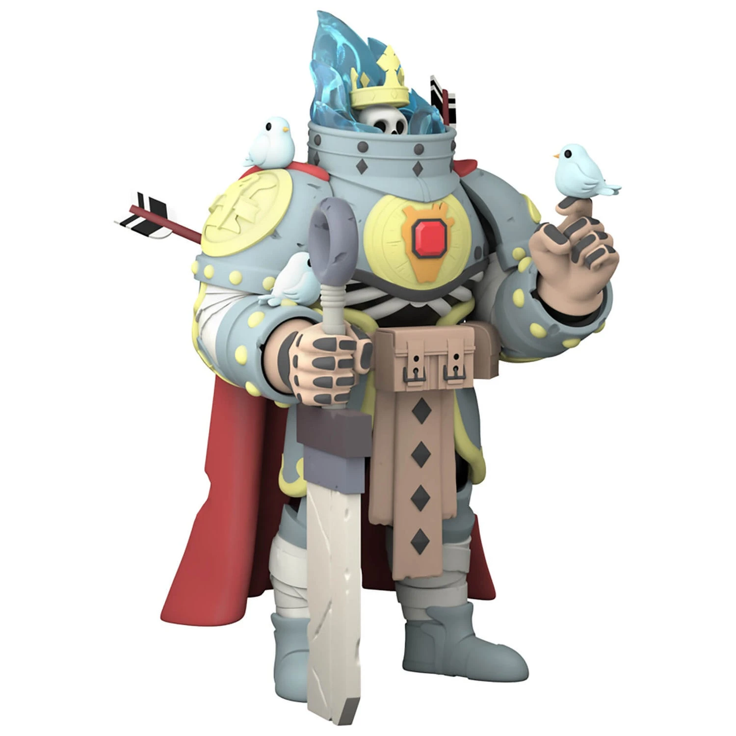 Mighty Jaxx brings this exciting world to life with Birdking by CROM. The guardian spirit’s skull is encased in transparent blue flames. At the heart lies a precious, glossy red gem that holds a secret. Other notable features include the birds surrounding it, arrows embedded in his armor, and the blade in his hands—all carefully crafted with intricate detailing.