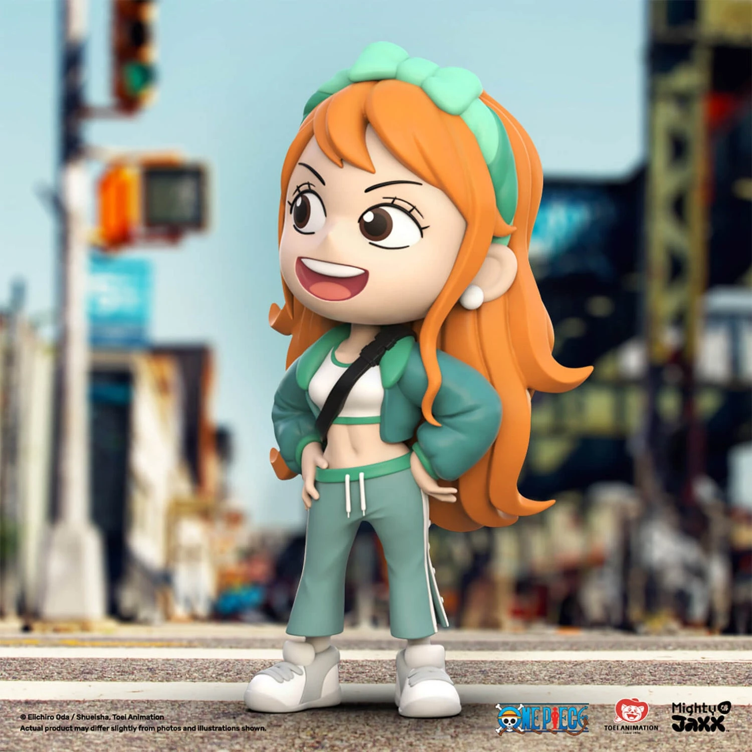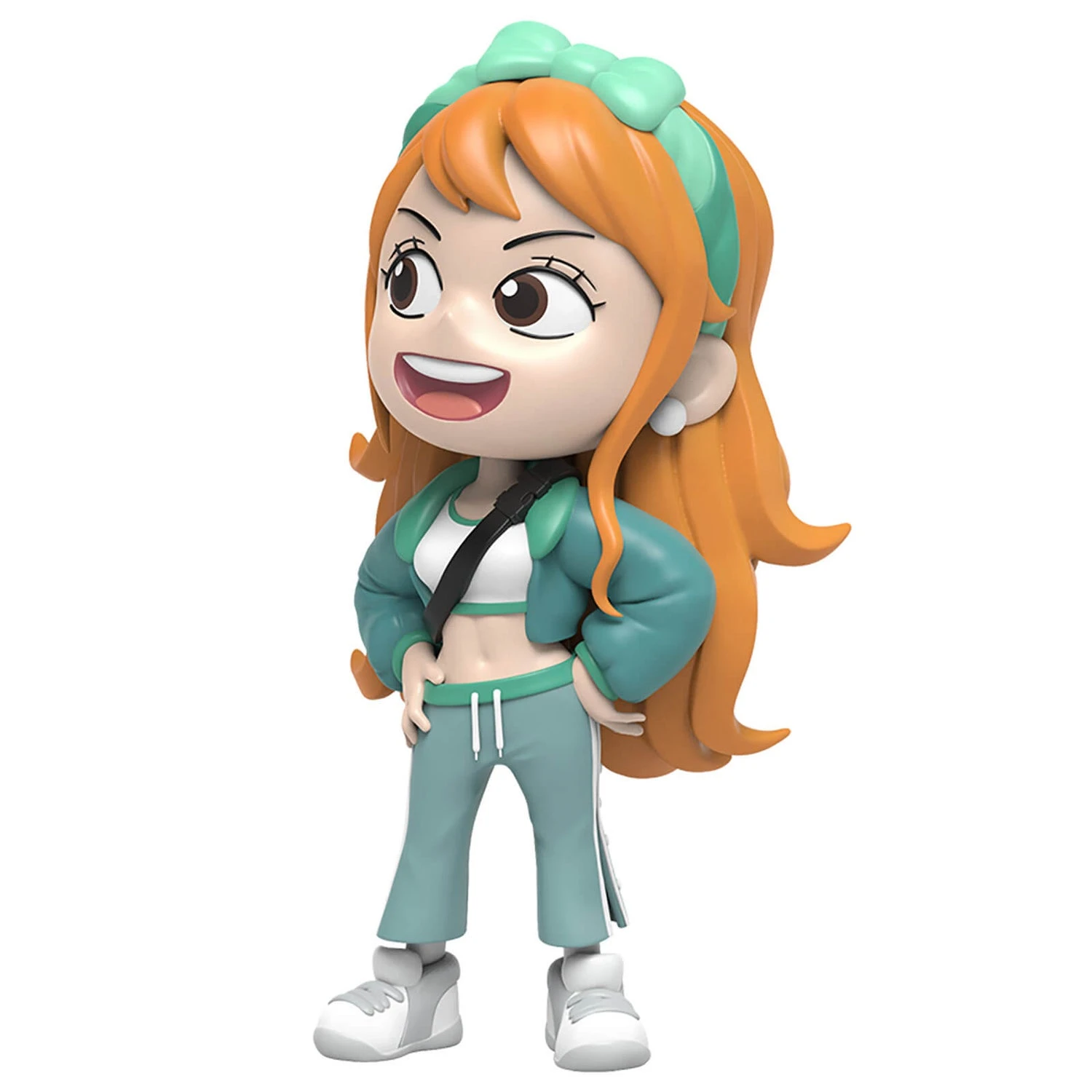 Nami, the fierce and stunning pirate, joins Luffy and Zoro in our universe as part of the CosmiQ x One Piece series. In this reimagining, we see her as a regular person, shedding her pirate persona and embracing a new role as the track team’s ace.
